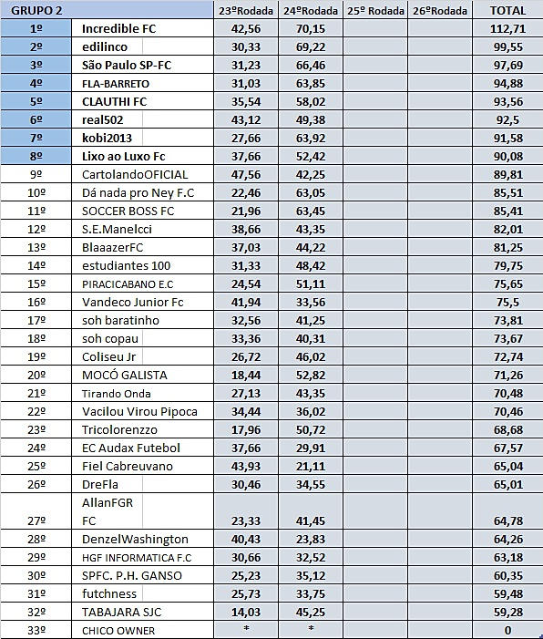 Salve galera, iremos pegar todos os resultados a cada rodada e postar as tabelas aqui, vc tambem pode acompanhar a copa, conhecer competidores e falar sobre cartola fc no